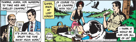 Seemingly another world away, Cherry and Shelley bask in the relative comfort of camp, surrounded by lush green and frolicking fowl… compared to the moonscape our hero and benefactor now find themselves in… I think Shelley is just a little OCD with that phone… surprised that by now the battery hasn’t gone dead as the phone constantly tries to find a signal, any signal… It must miss the city along with its owner! Doesn’t Shelley Realize that she has been transported back to another time and place, where objects of the future do little good?