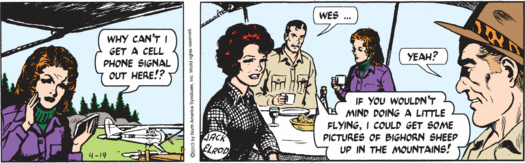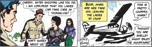 Shelley went fishing with that question, though, and is actually a bit surprised by Cherry’s answer, that she and Mark “enjoy living in a wilderness area.” Good for Shelley to show a little couth in that she did not insert the adjective that no doubt was forming on the tip of her tongue: godforsaken wilderness area… Oh but what fun awaits once the plane is not back when expected!