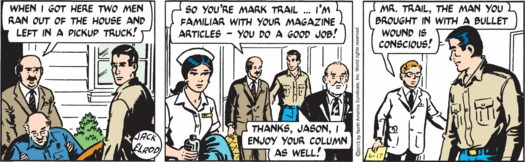 Without a shred of compunction, with nary a second thought as to motive or potential impact, these two baddies are quite pleased with themselves… the object of their evil plan finds itself locked in a trance seemingly unaware of the threat that has befallen him! Oh the injustice! The hairs on the back of Mark’s smooth, Lilly-White neck must be bristling, but he can’t know why, only that there is no-good happening in his universe…