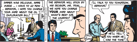 But really… who owns this plane? Who is piloting the Plane? Wes? BIG OIL? The Senator? Part of the congressional fleet on standby for junkets and fact-finding missions? Meanwhile, Johnny continues to display his pissy attitude toward to whole thing. Johnny, Honey, why don’t you shut your pie-hole and try to chill out for once in your life. You can’t control everything, you know…”