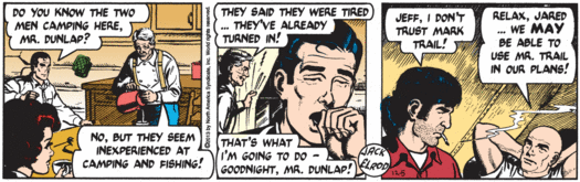 And get USED! How the wheels of the criminal mind turn! Rife with possibilities! The unexpected becomes an advantage. This is why Jared spent time in the can and Jeff stayed on the outside… Jared ignores all safety labels and fires up inside the tent… Yes they are inexperienced at fishing and camping, as Mr. Dunlap points out… so quick to judge, we are! And not to be picky… but the conjunction in the first frame should be ‘and’ and not ‘but…’ since the critical remark has little or nothing to do with whether Dunlap “knows these men” or not…