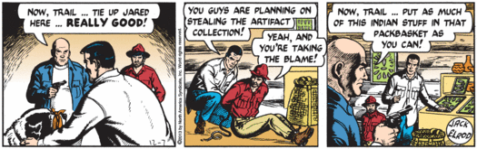 No sooner do you have a gun pointed at you and you fold like a cheap tent… even with Andy the wonder-dog on your side… Poor doggy now has his muzzle bound by a kerchief… and you are doing Jeff’s bidding by tying Jared up? What is it with Trail, Inc.? Bondage plays a big role in almost all their story lines that involve kidnapping and such… Remember Rusty in the back of Rod Bassey’s Van? The only thing missing there was the ball for the gag…