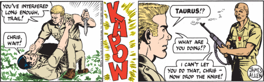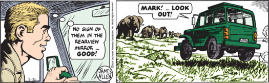 Sorry I can’t let go of this Austin Powers meme… I can’t believe I just used that word… I can’t believe that bull elephant is charging the Rover that ferries Mark Taurus and Lori… sort of like that scene where the Dr. Evil hench-man gets steam-rolled…