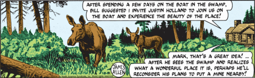 While the rest of the Eco-Enviro-free world is trying to figure out how to get Justin Holland alone to string him up by his money-belt, Mark is scheming mightily figuring out how to lure him onto the “nice” boat that Bill is arranging for the trip… Got news for you, Mark. He probably already has a boat, licensed in the Caymans, and your little floating shack ain’t gonna do squat to impress…