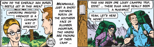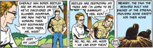 So back to the plot twist… the third plague of fire has been delivered (the first being the latter day form of locust- Emerald Ash Borer, the second being flood- brought about by beaver) and now Wally’s fate is sealed. No marriage to Susan, no little Wally’s running through his trees, not a prayer for a happy life. Mark, I think your work is done here… go home to Lost Forest before a stampede of Moose befalls them…