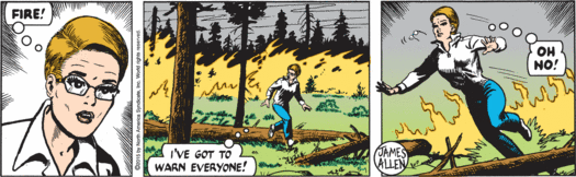 So as the tree / body count stacks up, we are left wondering how all this mayhem will resolve itself… is it possible that these motions set in place are unstoppable? I mean, there’s no evil-doer to punch out! Just Man against Nature, and well, Nature usually wins- with man left to apply for Federal Aid and Disaster Relief…