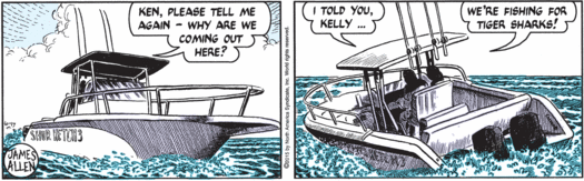 Or yes! Kelly Welly? Perhaps a bit premature in my thinking, but for those of you needing a reminder, recall that Kelly Welly is the reporter always tagging along with Mark and trying to scoop his stories, and while Mark never has to pick up the phone to ask for work, Kelly is a constant thorn in Editor Bill Ellis’ side begging for an assignment… A funnier moment has Kelly waiting in Mark’s hotel room with Mark in the shower! Nope, nothing to see there, kids… unfortunately that’s the truth…