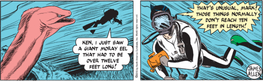 And Mark is smart to give this thing a wide berth… here’s a video of what seems like a ‘tame’ Moray biting a diver’s thumb off!! OK I have to admit I couldn’t watch the whole thing! He’s a dumb-ass anyway for feeding “Emma” sausages… But it’s the final scene from “The Deep” where Louis Gossett Jr. gets his head crushed by a Moray, only slightly more interesting that the earlier scene where Jacqueline Bisset is entered in an underwater wet t-shirt contest where she is the only contestant!