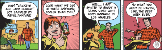 So glad that Mark’s “Terrible Week” ended up so well… and he’s a hero to Rusty! Sampled, otherwise known as stealing… let’s hope Mark sees more green than the green of Reptiliannaire’s suit!