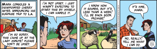 Yea, why let Cherry know what is taking you to LA? Why communicate? Leaves much more room unexpected outcomes and misunderstandings! The fruit of the comedic vine, so to speak…