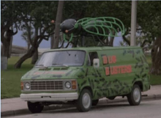 The cornpone humor continues, as even the rabbit is gob smacked to see this retread from a 1960s sitcom showing up in Lost Forest. It seems that the veil of propriety has been lifted from this area and we’re discovering that it is filled with a growing variety of oddballs. The apparent proximity of Lost Forest (near the coast of Georgia, it seems) to Florida must have something to do with the influx of creeps, kooks, and connivers. As another link to the influence of Florida weirdness, the moment I saw Ernest’s work van, a slice of tv trivia dropped into my bread pan. How about you? Think back to cop shows in Florida, around 1984. Okay, so there was only one. Miami Vice featured an undercover surveillance van disguised as a pest control truck, with a “flying ant” on top.