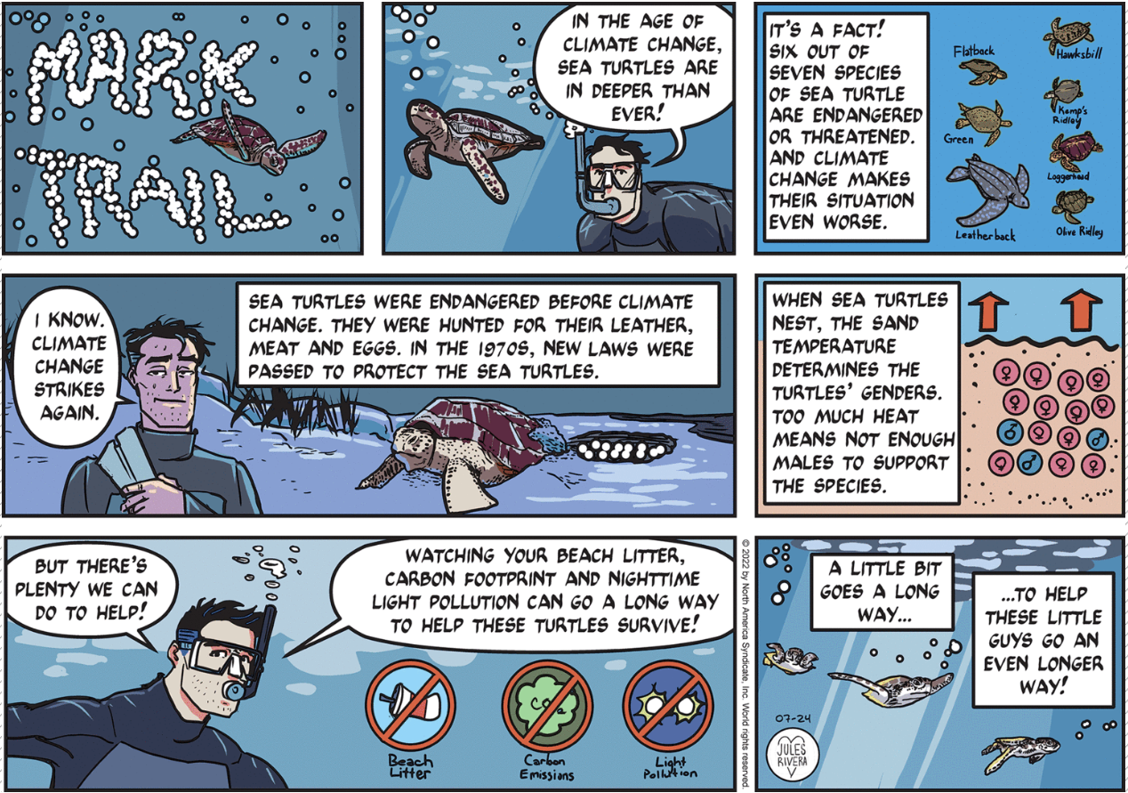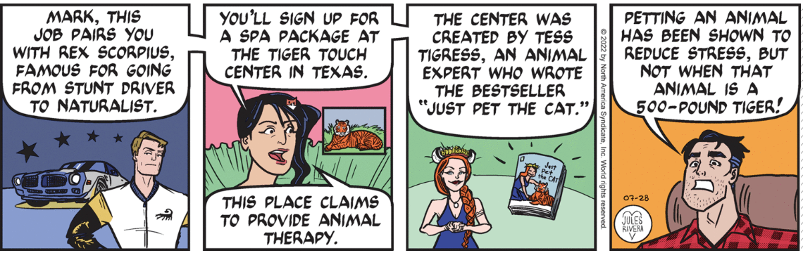 Is Rivera making fun of Mark and Cherry, casting them as a henpecked husband and a shallow wife? Or is Jules trying to use old TV tropes to connect with long-time readers? It is a dangerous approach, as many long-time readers clearly don’t cotton to Mark being made to look and act like an overly sensitive metrosexual who would prefer to stay home and listen to light jazz. Anyway, while Rivera gets this party going, let’s spend a bit of time looking at today’s nature talk!