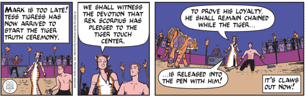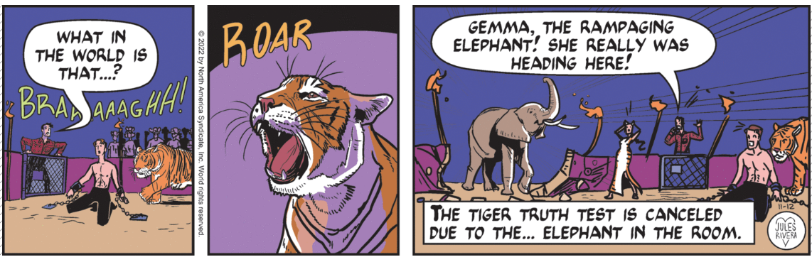 Okay, so this must be “Epilog Week”, as Mark and Bill Ellis flesh out the aftermath of this tawdry episode. Bill seems fixated on the elephant, in spite of the fact that Mark was actually there to investigate Tess’s tiger zoo operation. And where is Amy Lee, Mark’s assignment editor for this adventure? As for the losers who Tess recruited, I predict many will just find another charismatic charlatan to follow.