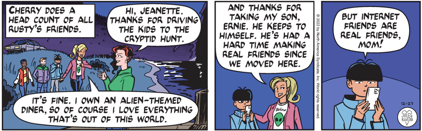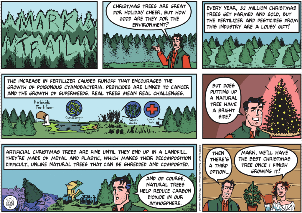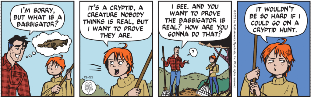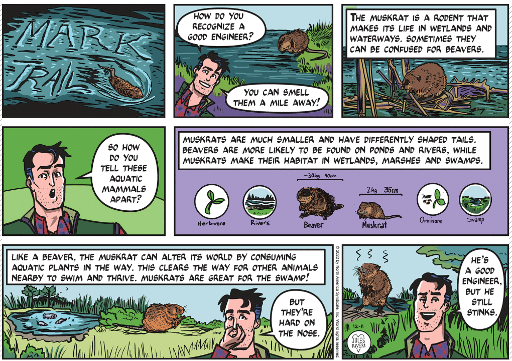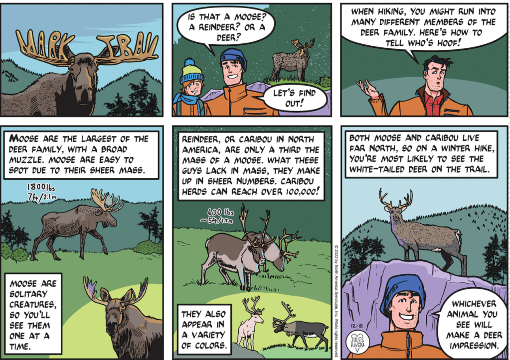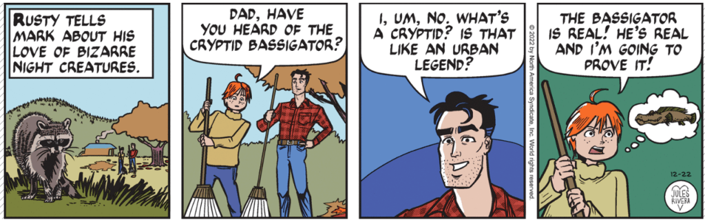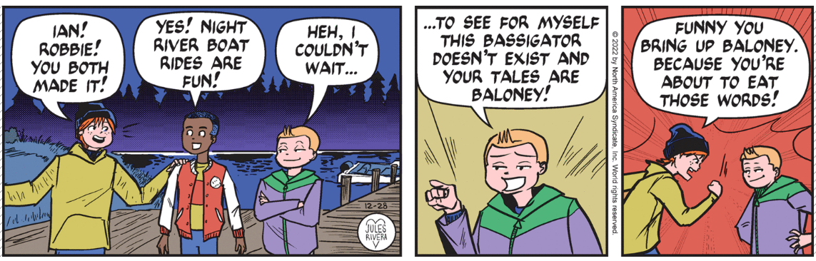 It also seems clear that today’s strip was deliberately composed only to set up the punchline about Mark’s reputation for destroying boats, the same way Capt. Kirk destroyed his uniforms. But it doesn’t move the story along.