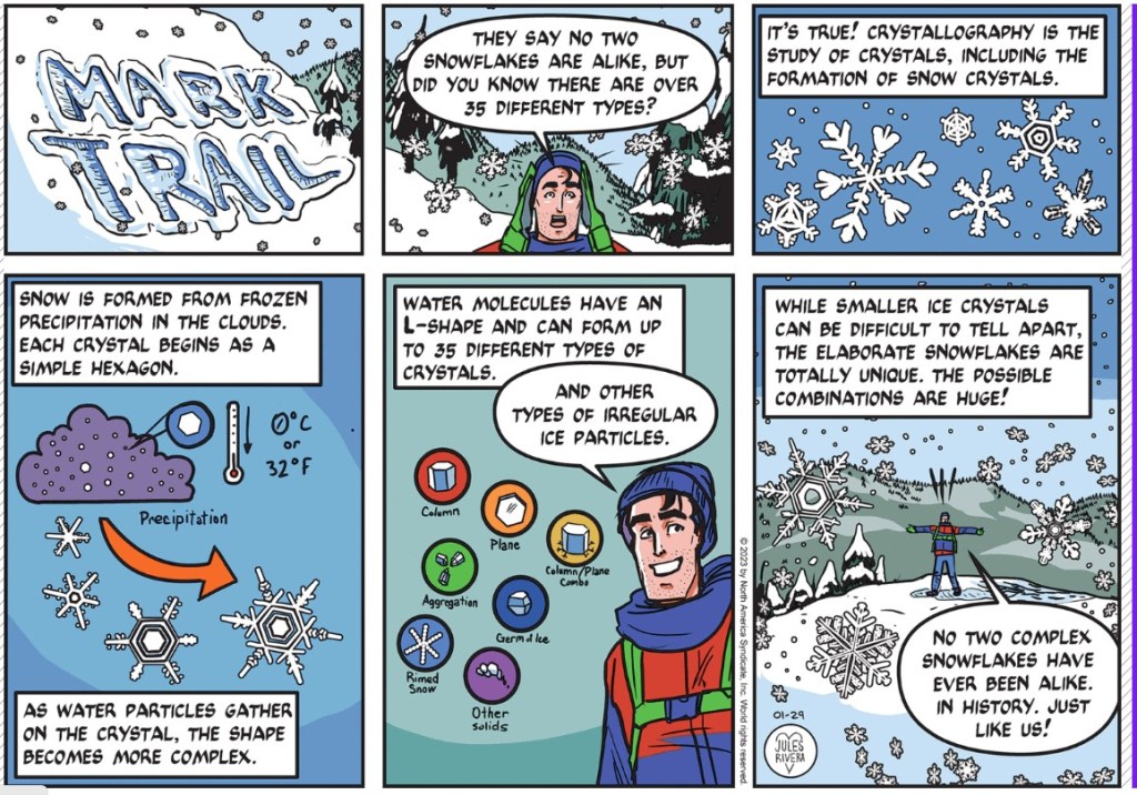 Well, the scientific consensus seems to be that the probability of snowflake duplication is very, very, very small, based on varying water content, individual crystal development, atmosphere, and the location of the snowfall. And those pesky flakes keep changing their shape as they fall. Nobody can check all snowflakes, of course. So, it’s as much an issue of mathematical probability as it is physics.