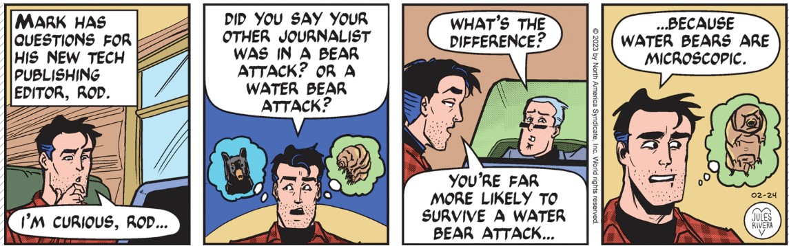 Preppy dresser Mark schools editor Rod Radagast in a fundamental biological difference between ursidae and tardigrada. If nothing else, Mark should feel relieved in the same way Rod should be embarrassed. Then again, any dude wearing granny shades is probably immune to such feelings.