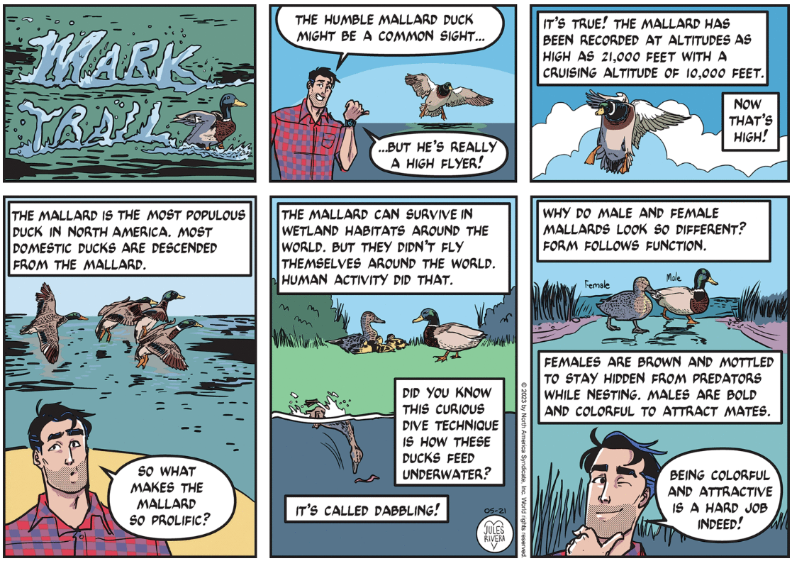 Okay, we have a pretty nice “classic” Sunday nature presentation with Mark, and another good title panel. Clearly, the animals shown here are very well depicted, especially compared to the cartoonish depictions of the bear in the daily strips. Why is that?