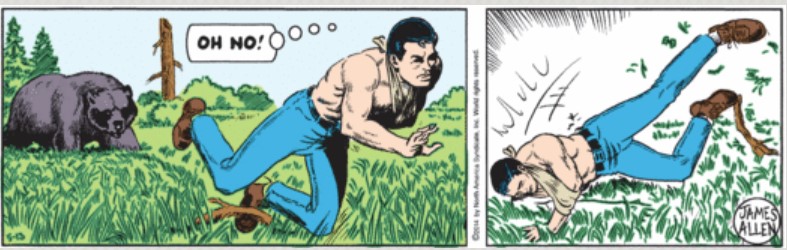 Even Mark has had his share of run-ins with bears and tripping. From May 13, 2014 we see Mark demonstrating the technique. In fact, through April and May 2014 Mark seemed to experience one fall after another, trying to escape this bad news bear. Wish I had found find this strip yesterday.