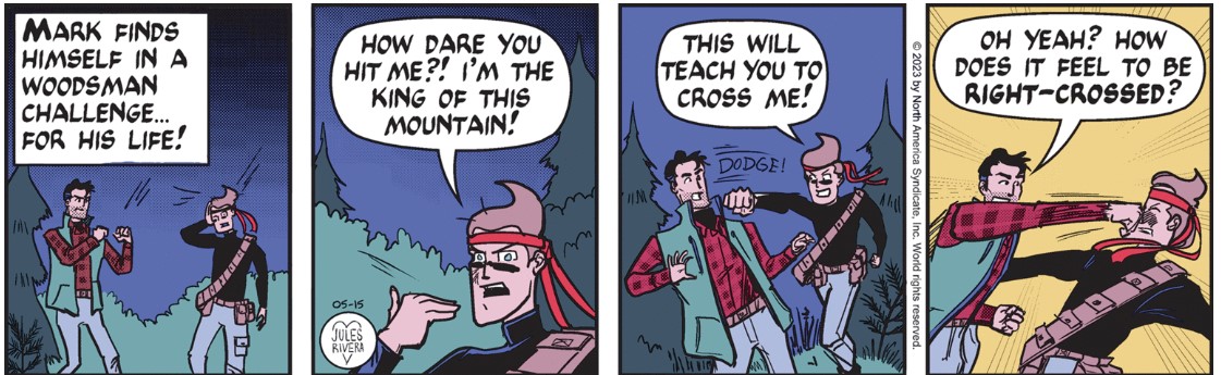 Some commenters over on the ComicsKingdom web site noticed that Mark was not sporting any type of beard in Saturday’s strip. They were right! Whether this was a publishing accident or a deliberate decision, it seemed an odd time to shave! Frankly, I never liked Mark’s “new” beard style and much preferred the old stubble. So, Rivera: Go stubble or go clean-shaven.