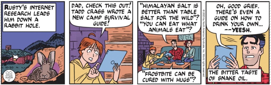 Still, just what does Rusty think he can find at night, without a flashlight? Yes, I know this wouldn’t be as dramatic and suspenseful in the daytime.