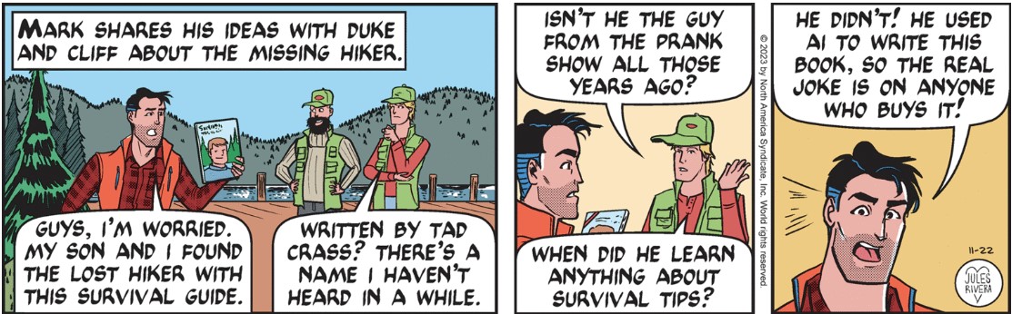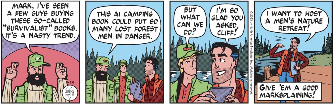 Well, keeping up with the times, “AI” is the bogeyman to this version of Mark Trail that the Internet was to the prior version of Mark Trail. (from February 2020)