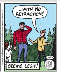 Art Dept. Close examination of Mark in panel 2 might help explain how those ubiquitous raised arms with pointing fingers often look disconnected. Also, I’ve been getting distracted by these strange sideways mouths (panel 3) I’m seeing. I’m not sure what this oddly drawn depiction means, but it’s been showing up a lot, lately (e.g. Jeanette on 5/21 and 5/22; Violet on 5/24). I also spotted this sideways mouth as far back as January 30, 2023 on Mark, while he experienced a moment of frustration. It could go back further, but I was too lazy to look. Feel free to do it, yourself. All I know is that it isn’t the usual way Rivera draws mouths. Maybe Rivera is experimenting with her drawing style.