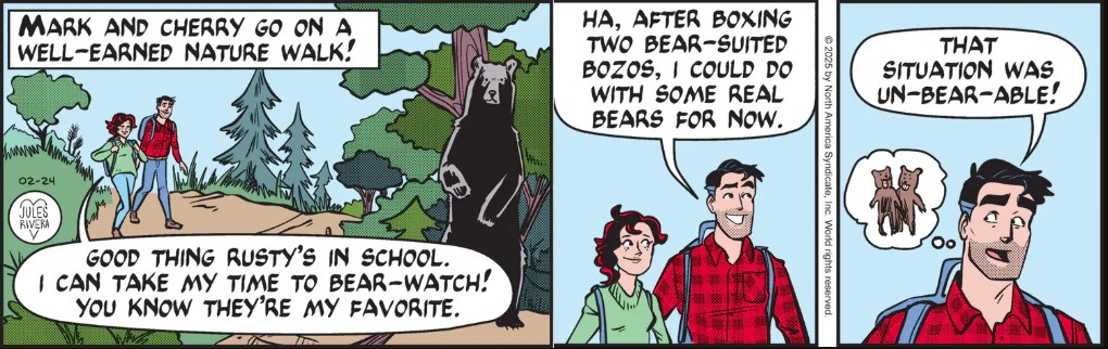 Notification Repeat: I’m on the road now and will be for the next 3 days, heading for a family visit. See details on Friday’s blog. There may be delays in posting, but I’ll eventually catch up. So if you don’t see the current strip you expect, check back later or the next day. Once I’m in Virginia, things should normalize.