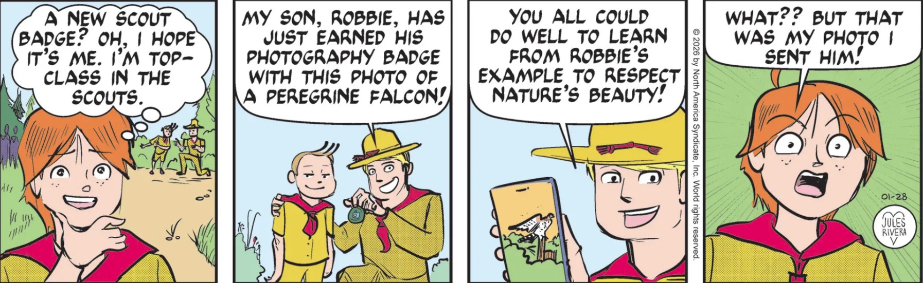 Anyway … if Rusty doesn’t get satisfaction, I hope he calls Robbie a liar and a cheat to his Dad’s face, quits that wimpy scout troop, and spends more time learning to talk to girls.
