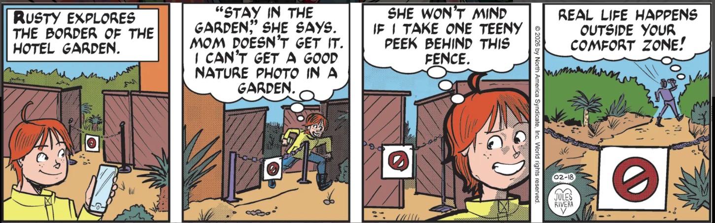 There may be some among us who would prefer spending more time with Cherry and her luxurious bath, just to ensure that none of that precious water slips over the rim of the tub and misses out on that state-of-the-art reclamation. However, Jules Rivera prefers to divert our attention to the continuing exploits of Rusty Trail. Like father like son, Rusty convinced himself that finding adventure is worth breaking rules. And what kind of adventure will he have? There’s only three more days in the week, so let’s hope Rusty makes the most of it.