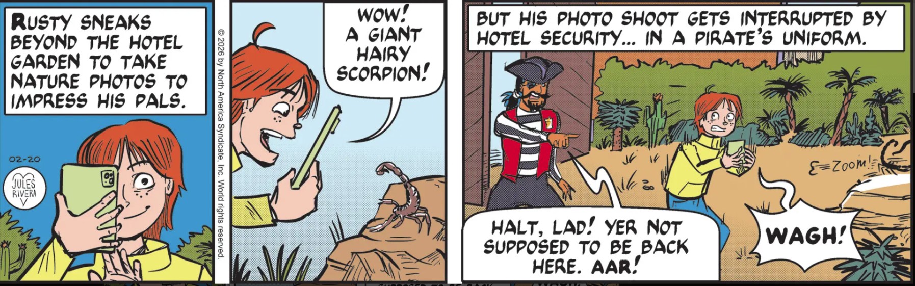 Let’s get back to the story: Why would hotel security be concerned about anybody walking on the hotel grounds? Is this an actual hotel or a secret government agency masquerading as a resort? If there was anything actually dangerous, I would expect to see stricter measures in place, even a warning from the Check-In Desk personnel; but certainly not just a vague “Forbidden!” sign taped to a simple chain. So what gives here? Is Rivera just playing around with some make-believe security nonsense for the sake of one of her jokes? Frankly, I’m still of a mind that this combined “Olympic Event” and Pirate Hotel is part of a giant con job set up by one of Mark’s well-known rivals, though I have no idea what the purpose or goal would be.