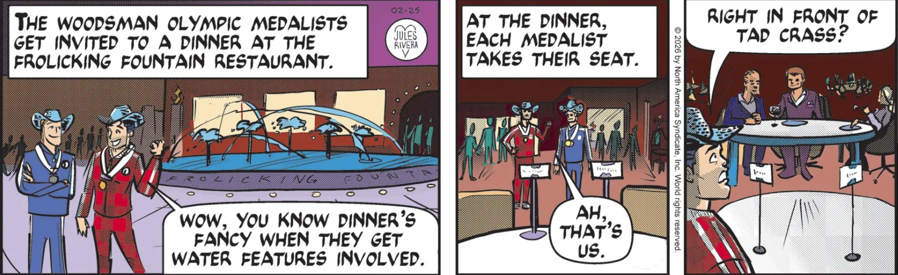 So this dinner marks Mark’s second appearance at a post-event dinner. The first time was at the faux AI Conference in New York (“AI, AI, Oh!”), run by popular conman Cricket Bro and his equally corrupt (but less flashy) brother, Crypto Bro. That story featured a pointless cameo by Sid Stump. Now, we have Tad Crass. And this is the second time in this story Mark spotted him. In both instances, Tad did not notice Mark. So far. Do you think Tad’s appearance will wind up being just another red herring? Maybe we’ll find out this week, and we might find out what the real point of this story is.