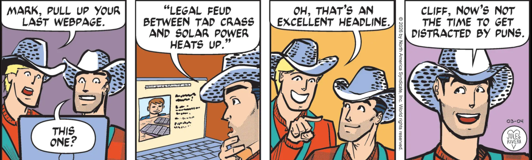 You know you are losing your edge when Cliff has to point out a web page you blew past without due consideration. We can’t tell for sure, since Mark is more concerned with exercising his wit than his wits (And wasn’t that a better pun?!). Perhaps in a few days or so, today’s strip might prove to be more informative. I just hope they ditch those horrible hats!