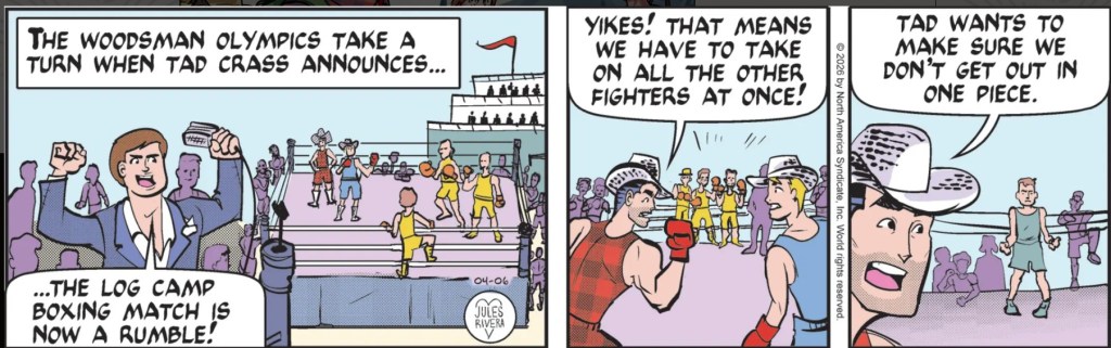 But, go ahead; I can’t stop you. I know that the pressure to say something has been building in you. You see the increasing insanity going on here: How unrealistic it is, defying the very laws of logic, physics, and content of the Treaty of Versailles. I speak, of course, of the boxing rink drawing in panel 3. So just go post your snarky analyses! At least it will save me the effort of thinking up something to write.