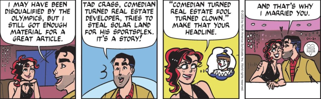 What we first learned on March 5 was that land originally allotted to a solar energy firm is now “under dispute with Tad Crass.” Then on March 6, we discovered that Tad Crass had already started construction on the site in question, but it had been stopped by the city and was under review. I’m not sure how any major construction project can take place without permits already in place. Right?