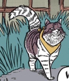 Another story skedaddled to a conclusion. Cherry and Doc Davis continued their hunt for Banjo Cat, finally locating the feline by accident, in spite of Doc’s futile attempts to lure the cat out with his banjo playing. But Banjo Cat wasn’t done playing them, as it showed itself in the open before taking a run across fields and busy road traffic. Of course Cherry and the Doc pursued. How elderly Doc gets around with a banjo strapped across his back is a wonder. Anyway, wouldn’t you know it, Banjo Cat somehow made its way into the office of the Sunny Soleil Society, where it interrupted Violet playing her now-repaired harp. Would Banjo Cat finally face Violet’s violent wrath?