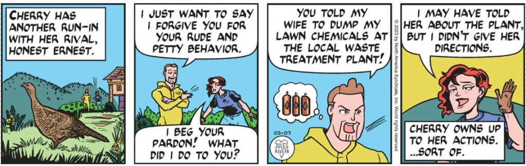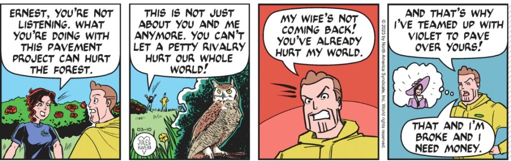 Okay, the Saturday strip was not a lead-in to today’s discussion, as I guessed. Fool me once, shame on me… fool me uh … won’t get fooled again!