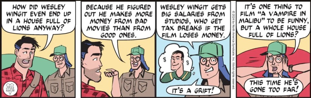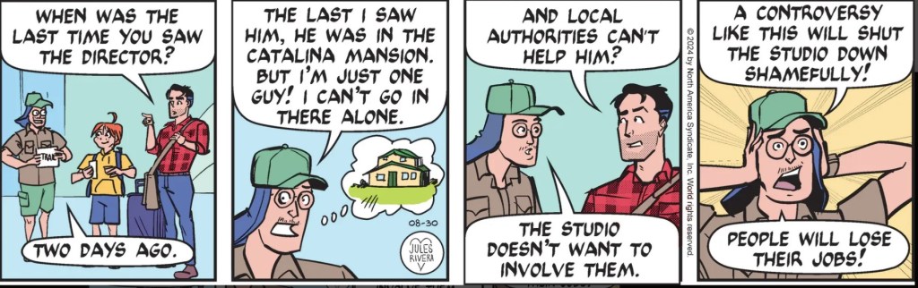 And today continues the weirdness, as we learn that wrangler Sammy Spotter will, indeed, take part in the search and rescue of movie director Wesley Wingit. And only Spotter and Mark can do the job! In what way, we don’t yet know, bringing into question the role of an additional person. No matter, we’ll soon find out.