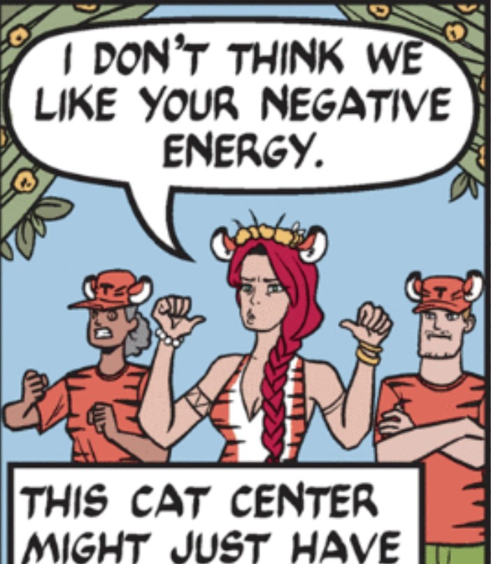 Okay, time is up. Did you figure out the visual quotation? Here it is, from September 2022: Tess Tigress and her assistants at the Tiger Touch Center.