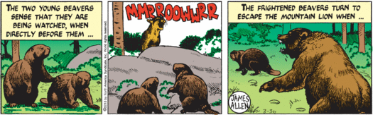 C’mon, guys, think! there’s two of you and two beavers! A snack for each of you at least…